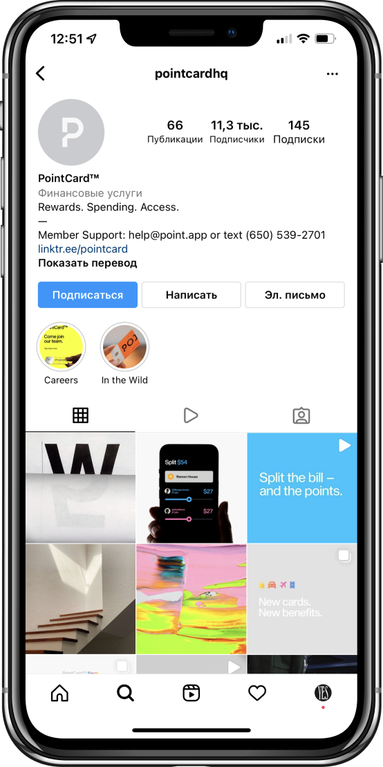 С помощью таргетированной рекламы, работы с инфлюенсерами и созданию креативного визуала привлекли более 10 000 подписчиков в аккаунт финансовой компании «Point Card», США